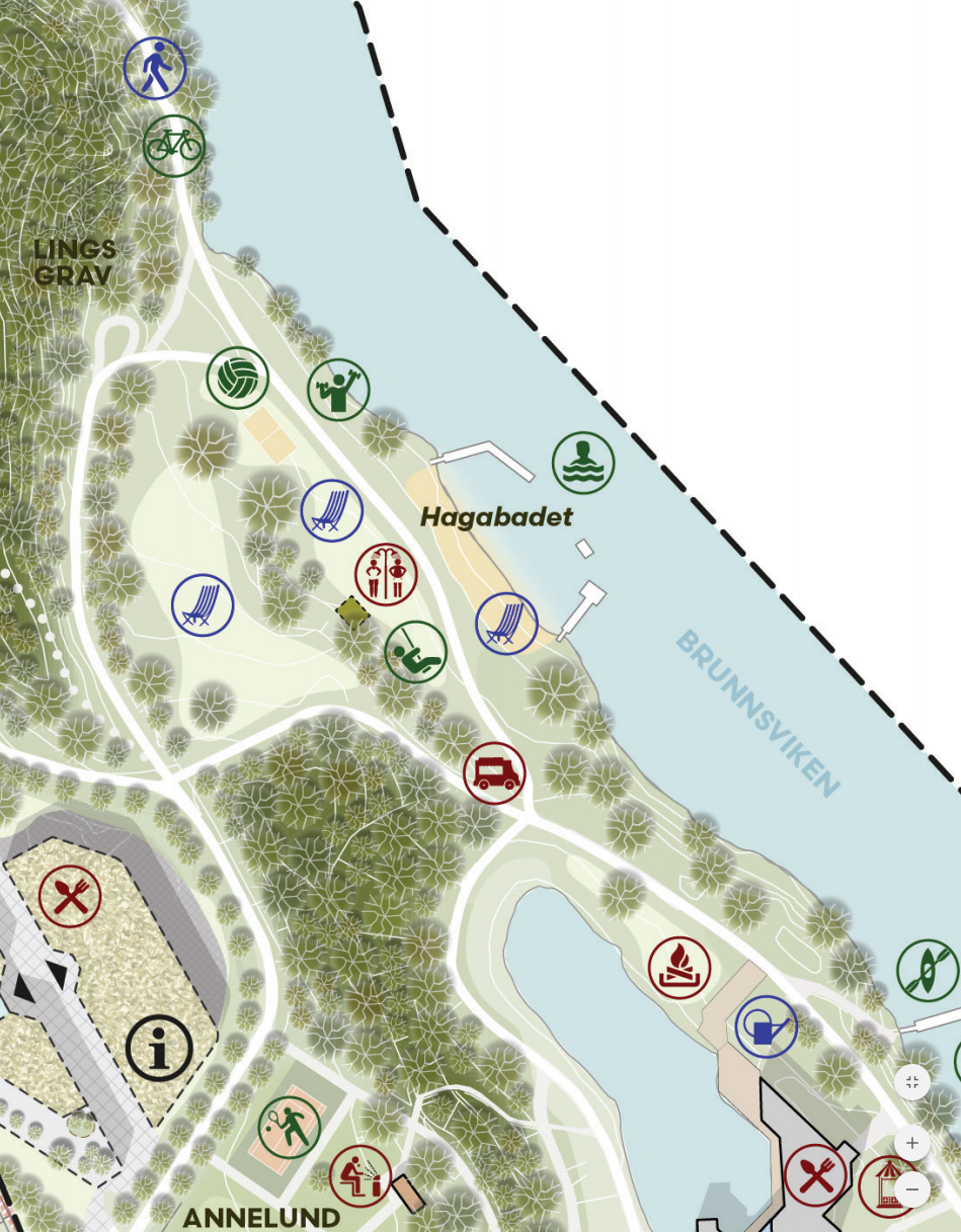 När jag skriver ”helhetsgrepp” så menar jag att man inte bara anlägger ett strandbad. Enligt planen ska man i samma område se till att det finns: